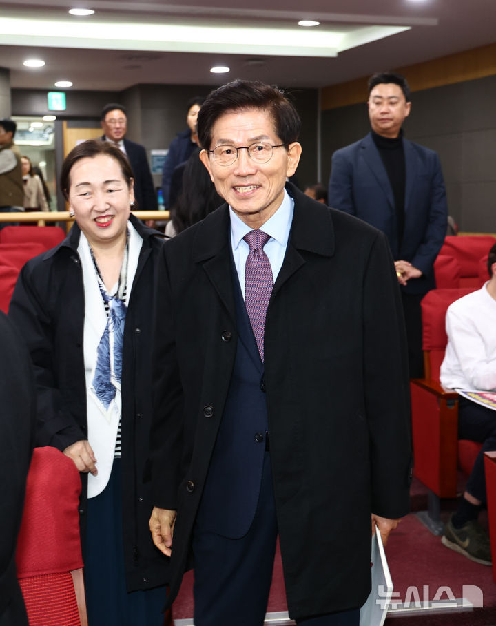 [서울=뉴시스] 김명년 기자 = 김문수 전 고용노동부 장관이 3일 오전 서울 여의도 국회 의원회관에서 열린 '북한인권법 제정 10주년 국민보고대회'에서 입장하고 있다. 2026.03.03. [email protected]