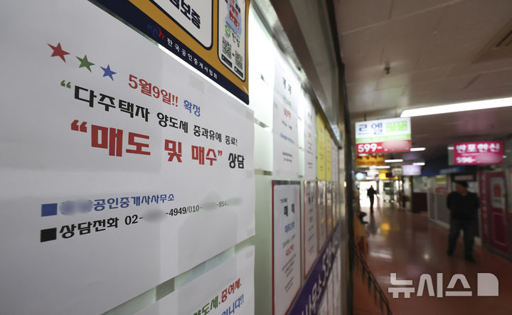 [서울=뉴시스] 김근수 기자 = 3일 서울 서초구의 한 공인중개사 사무실 앞에 다주택자 양도세 중과 유예 종료 안내문이 붙어 있다.