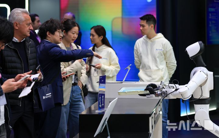 [바르셀로나=뉴시스] 사진공동취재단 = 3일(현지 시간) 스페인 바르셀로나 피라 그란 비아 전시장에서 열린 '모바일 월드 콩그레스(MWC)2026'에서 중국기업의 딤섬 서빙 로봇이 시연을 펼치고 있다. 2026.03.03. [email protected]