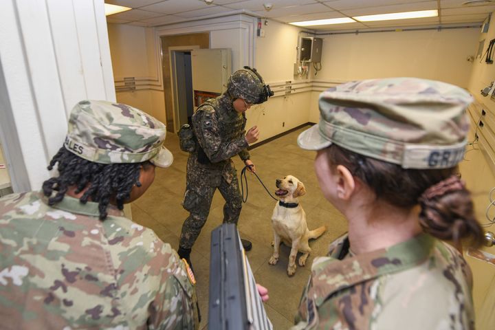 [대구=뉴시스] 정재익 기자 = 4일 대구 남구 캠프 워커 미8군 제19원정지원사령부에서 공군 제11전투비행단 군사경찰대대 장병들이 미8군, 대구 경찰특공대와 함께 군견 연합 훈련을 진행하고 있다. (사진=공군 제11전투비행단 제공) 2026.03.04 [email protected]