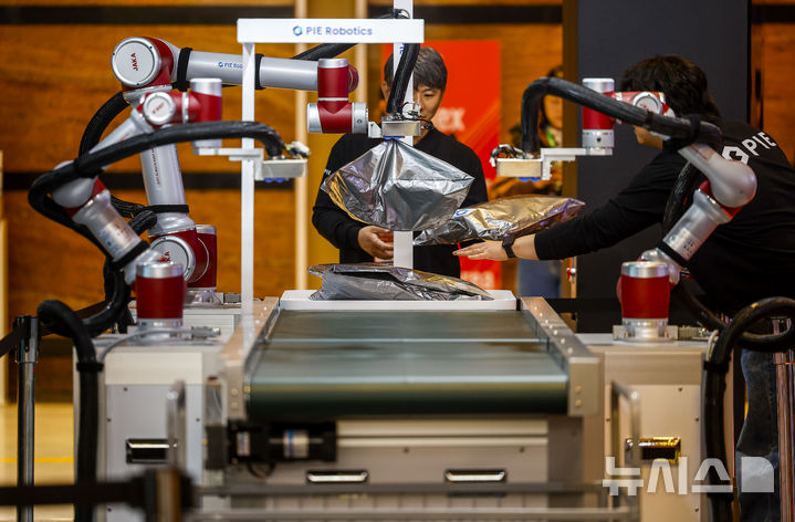 [서울=뉴시스] 정병혁 기자 = 4일 서울 강남구 코엑스에서 열린 2026 스마트공장·자동화산업전에 파이로보틱스의 픽앤플레이스 로봇이 시연되고 있다. 2026.03.04. [email protected]