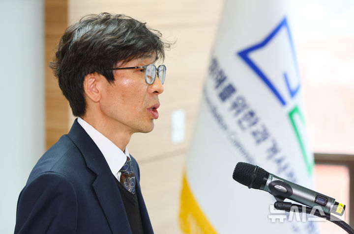 [서울=뉴시스] 황준선 기자 = 송상교 신임 진실·화해를위한과거사정리위원회 위원장이 4일 오후 서울 중구 진실화해위에서 열린 취임식에서 취임사 하고 있다. 2026.03.04. [email protected]