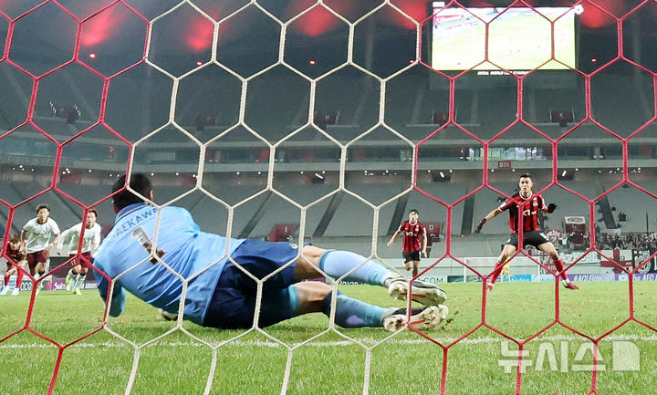[서울=뉴시스] 조성우 기자 = 4일 오후 서울 마포구 서울월드컵경기장에서 열린 2025-2026시즌 아시아축구연맹(AFC) 챔피언스리그 엘리트(ACLE) 16강 1차전 FC서울과 비셀 고베의 경기 후반전, FC서울 후이즈의 페널티킥이 고베 골키퍼 마에카와 다이야에게 막히고 있다. 2026.03.04. [email protected]