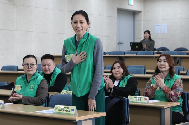 [서울=뉴시스] 5일 경기 성남시 분당구 새마을운동중앙회에서 열린 '2026 몽골 새마을운동 수탁교육 입교식'에서 몽골 연수생이 자기소개를 하고 있다. (사진=새마을운동중앙회 제공) 2026.03.05. [email protected] *재판매 및 DB 금지