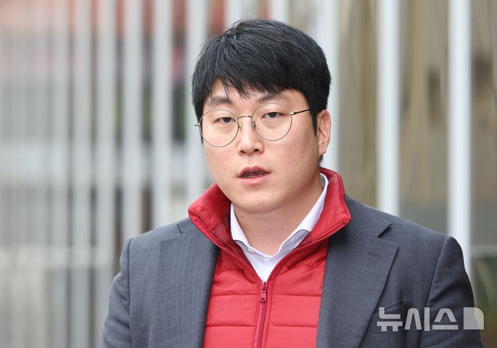 [서울=뉴시스] 황준선 기자 = 김민석 강서구의원이 5일 오후 서울 강서경찰서에서 진성준 더불어민주당 의원 정치자금법 위반 혐의 고발 사건 관련 고발인 조사에 출석하며 취재진 질의에 답변하고 있다. 2026.03.05. [email protected]