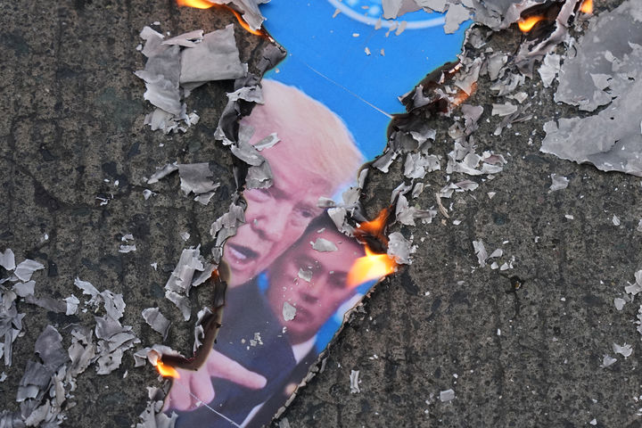 트럼프 사진 불태우는 필리핀 시위대