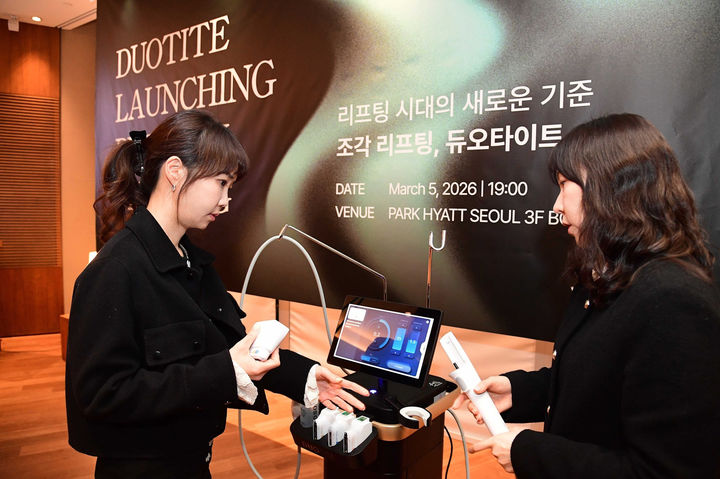 듀오타이트는 고강도 집속 초음파(HIFU)를 통해 피부 깊숙한 곳에 있는 근막층(SMAS층)과 피부 조직을 이루는 진피층에 열에너지를 전달하도록 설계된 리프팅 의료기기다. (사진=비올메디컬 제공) 2026.03.06. [email protected] *재판매 및 DB 금지