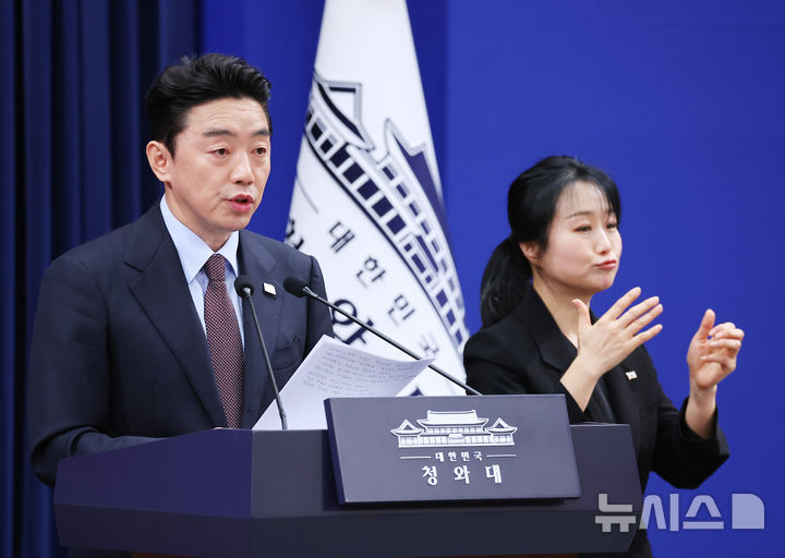 [서울=뉴시스] 최동준 기자 = 강훈식 대통령 비서실장이 6일 청와대에서 UAE 체류 국민 귀국 지원 및 원유 확보 관련 브리핑을 하고 있다. (청와대통신사진기자단) 2026.03.06. [email protected]