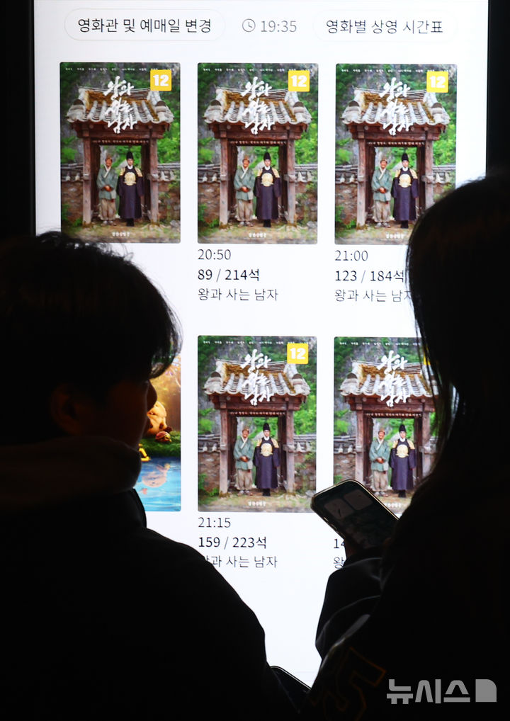 [서울=뉴시스] 황준선 기자 = 영화 '왕과 사는 남자'의 관객이 1000만명을 넘긴 6일 서울 시내 한 영화관에서 시민들이 '왕과 사는 남자' 상영 정보를 살펴보고 있다. 2026.03.06. [email protected]