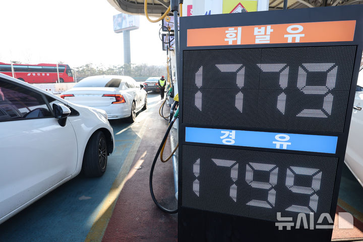 [서울=뉴시스] 배훈식 기자 = 미국과 이스라엘의 이란 공습에 따른 중동 정세 불안 여파로 국내 주유소 기름값이 가파르게 상승한 8일 오전 서울 서초구 만남의광장 주유소에서 운전자들이 차량에 기름을 넣고 있다. 이번 중동 사태로 기름값이 하루가 멀다하고 치솟으며 운전자들 사이에 '주유런'이라는 신조어까지 등장했다. 2026.03.08. [email protected]
