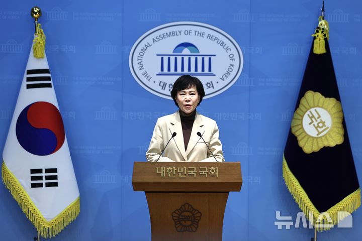 [서울=뉴시스] 김명년 기자 = 전현희 더불어민주당 의원이 8일 오전 서울 여의도 국회 소통관에서 3.8 세계 여성의 날 기념 여성 정책 발표 기자회견을 하고 있다. 2026.03.08. [email protected]