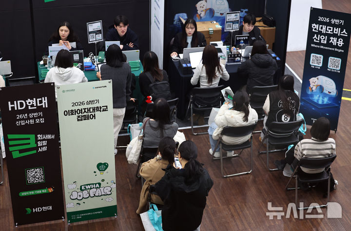 [서울=뉴시스] 최진석 기자 = 9일 서울 서대문구 이화여자대학교에서 열린 2026 상반기 이화여자대학교 잡페어를 찾은 학생들이 취업상담을 받고 있다. 2026.03.09. [email protected]