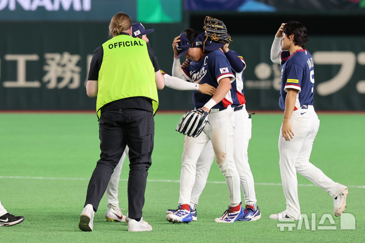 [도쿄=뉴시스] 권창회 기자 = 9일 일본 도쿄돔에서 열린 2026 WBC 조별리그 C조 4차전 한국과 호주의 경기, 7-2로 승리해 WBC 본선에 진출한 한국 대표팀 선수들이 기뻐하고 있다. 2026.03.09. [email protected]