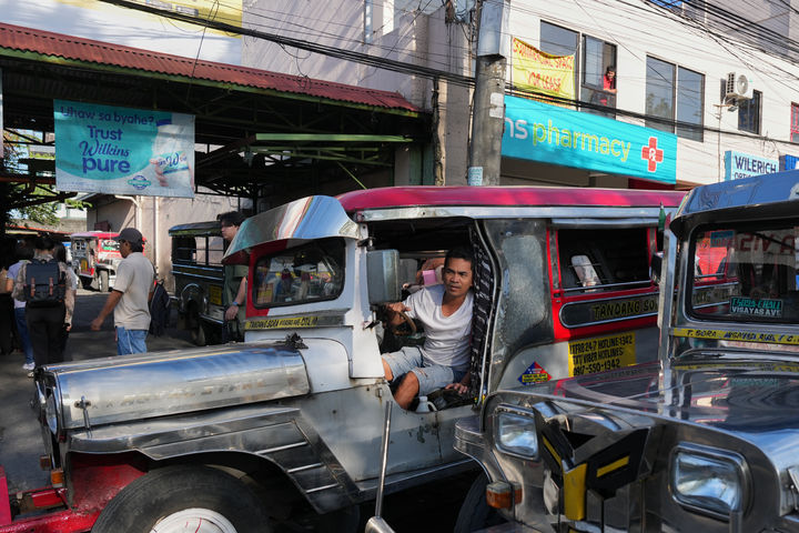 [케손시티=AP/뉴시스] 10일(현지 시간) 필리핀 케손시티에서 유가 급등의 영향으로 대중교통 '지프니' 운행이 줄어든 가운데 한 지프니 운전자가 손님을 기다리고 있다. 2026.03.10.