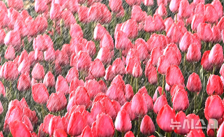 [용인=뉴시스] 김종택 기자 = 10일 경기 용인시 에버랜드 식물하우스에서 피어나기 시작한 튤립이 물을 머금고 있다.