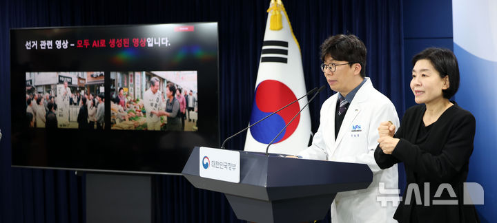 [서울=뉴시스] 김선웅 기자 = 박남인 국립과학수사연구원 연구관이 10일 종로구 정부서울청사에서 AI 딥페이크 탐지 분석 모델을 시연하고 있다. 2026.03.10. [email protected]