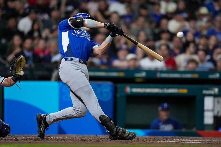 [휴스턴=AP/뉴시스] 이탈리아의 샘 안토나치가 10일(현지 시간) 미 텍사스주 휴스턴 다이킨 파크에서 열린 2026 월드베이스볼클래식(WBC) 조별 리그 B조 최종전 미국과 경기 2회 초 2점 홈런을 치고 있다. 이탈리아가 6회 현재 5-0으로 앞서고 있다. 2026.03.11.