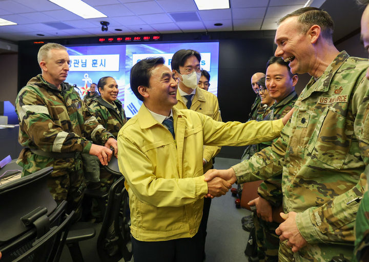 [서울=뉴시스] 홍효식 기자 = 안규백 국방부 장관이 FS 연습이 진행 중인 11일 연합 공군구성군사령부를 방문해 한미 장병들을 격려하고 있다. (사진=국방부 제공) 2026.03.11. [email protected] *재판매 및 DB 금지