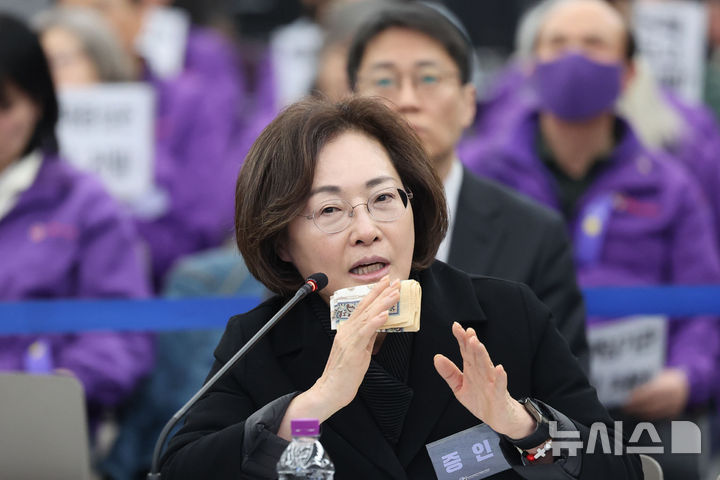 [서울=뉴시스] 권창회 기자 = 박희영 용산구청장이 13일 서울 중구 은행회관에서 열린 10·29 이태원참사 진상규명 청문회에서 위원 질의에 답하고 있다. 2026.03.13. [email protected]