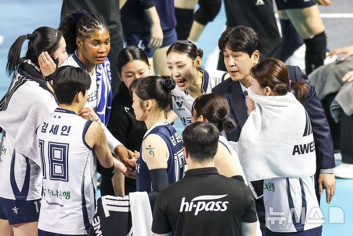 [인천=뉴시스] 정병혁 기자 = 13일 인천 부평구 인천삼산월드체육관에서 열린 2025-2026 프로배구 V리그 여자부 흥국생명과 한국도로공사의 경기, 한국도로공사 김종민 감독이 지시를 내리고 있다. 2026.03.13. [email protected]