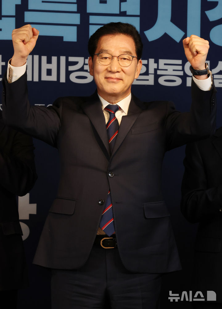 [서울=뉴시스] 박주성 기자 = 더불어민주당 전남광주통합특별시장 경선 후보인 신정훈 예비후보가 14일 오후 서울 여의도 더불어민주당사에서 열린 제9회 전국동시지방선거 전남광주통합특별시장 후보자 검증을 위한 온라인 합동연설회에 참석해 인사하고 있다. 2026.03.14. [email protected]