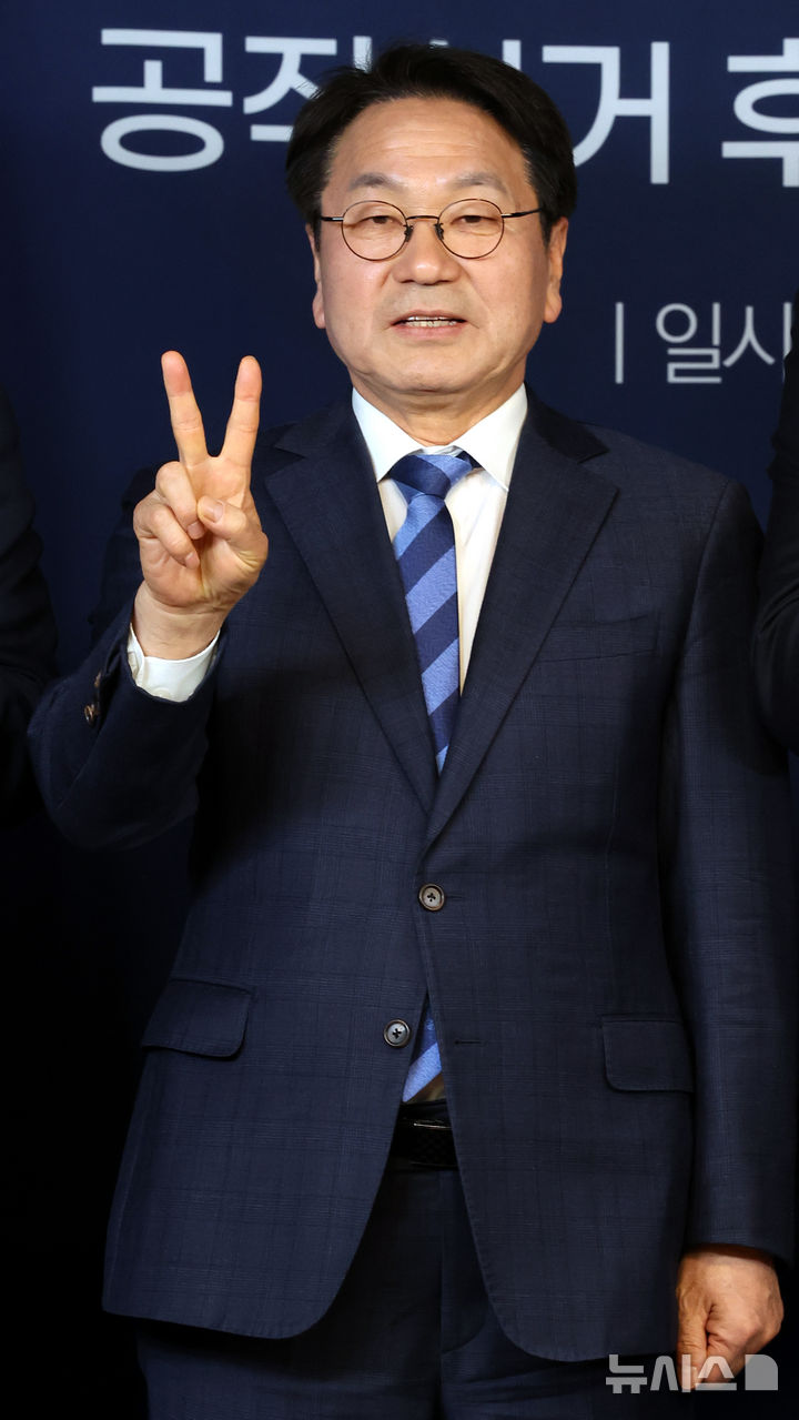 [서울=뉴시스] 박주성 기자 = 더불어민주당 전남광주통합특별시장 경선 후보인 강기정 예비후보가 14일 오후 서울 여의도 더불어민주당사에서 열린 제9회 전국동시지방선거 전남광주통합특별시장 후보자 검증을 위한 온라인 합동연설회에 참석해 인사하고 있다. 2026.03.14. [email protected]