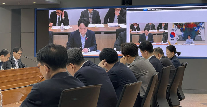 [서울=뉴시스] 추상철 기자 =16일 서울 종로구 정부서울청사 외교부 종합상황실에서 국무총리실 실장 등이 미국 순방중인 김민석 총리와 영상 간부회의를 하고 있다. (사진= 총리실 제공) 2026.03.16. [email protected] *재판매 및 DB 금지