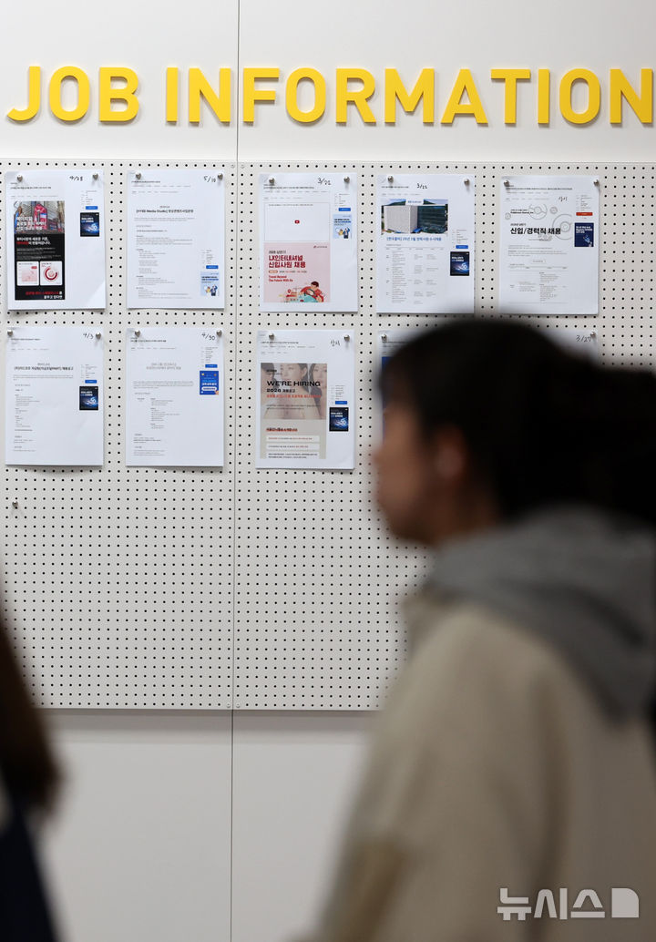 [서울=뉴시스] 이영환 기자 = 18일 서울 성북구의 한 대학교 일자리플러스센터 일자리정보 게시판에 채용공고가 게시되어 있다.