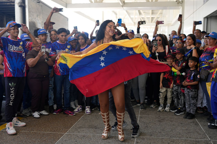 [마이케티아=AP/뉴시스] 18일(현지 시간) 베네수엘라 마이케티아의 시몬 볼리바르 국제공항에서 시민들이 2026 월드베이스볼클래식(WBC) 우승컵이 도착하기를 기다리며 춤추고 있다. 전날 베네수엘라 야구대표팀이 미국을 꺾고 사상 처음으로 우승한 것과 관련해 델시 로드리게스 임시 대통령은 임시 국경일을 선언하고 모든 이가 함께 우승을 축하하자고 말했다. 2026.03.19.