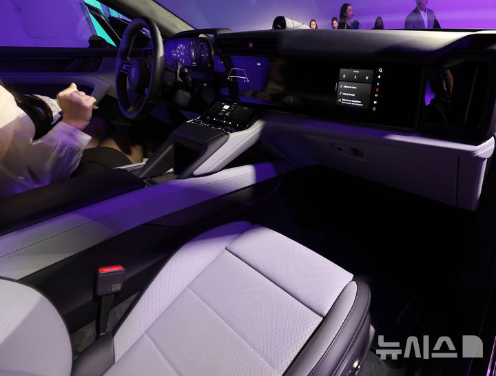 [서울=뉴시스] 배훈식 기자 = 2026 포르쉐코리아 신년 기자 간담회가 열린 19일 오전 서울 광진구 Pie factory에 전시된 '카이엔 일렉트릭' 차량 내부 모습. 포르퀘코리아는 이날 카이엔 일렉트릭과 함께 한국 고객만을 위한 한정 모델 '파나메라 레드 익스클루시브'를 국내에 최초 공개했다. 2026.03.19. [email protected]