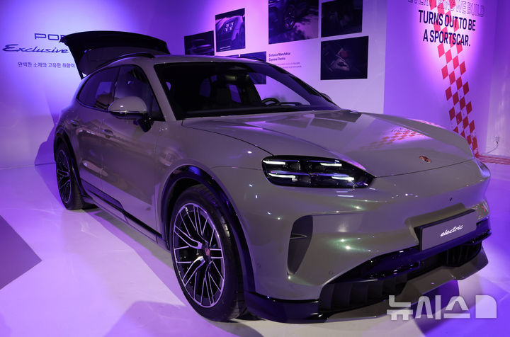 [서울=뉴시스] 배훈식 기자 = 2026 포르쉐코리아 신년 기자 간담회가 열린 19일 오전 서울 광진구 Pie factory에 '카이엔 일렉트릭' 차량이 전시돼 있다. 포르퀘코리아는 이날 카이엔 일렉트릭과 함께 한국 고객만을 위한 한정 모델 '파나메라 레드 익스클루시브'를 국내에 최초 공개했다. 2026.03.19. [email protected]