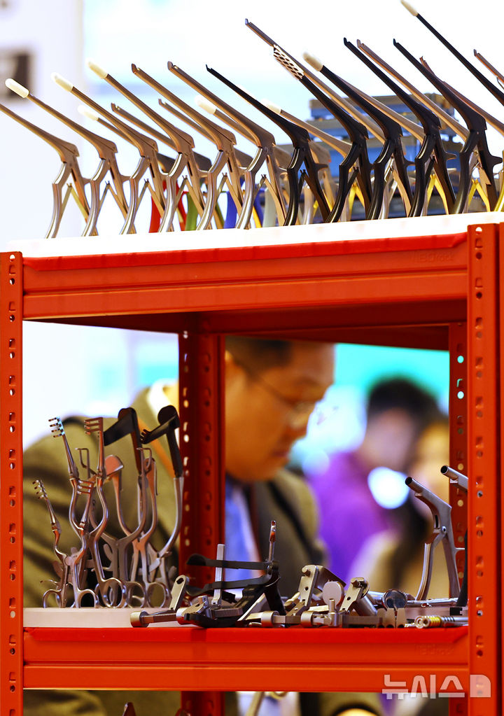 [서울=뉴시스] 최진석 기자 = 19일 서울 강남구 코엑스에서 열린 제41회 국제의료기기병원설비전시회(KIMES)를 찾은 관람객이 의료용품을 살펴보고 있다. 2026.03.19. [email protected]