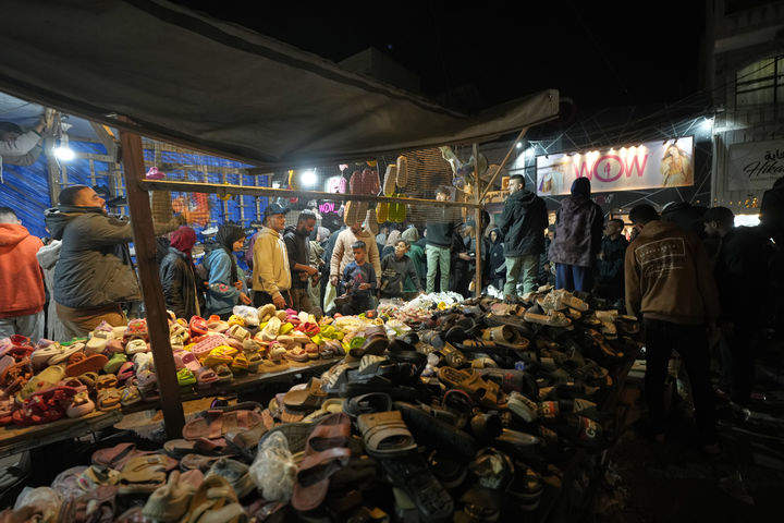 [가자시티=AP/뉴시스] 19일(현지 시간) 가자지구 가자시티 시장에서 팔레스타인 주민들이 라마단을 종료하는 이드 알피트르를 앞두고 물건을 구매하고 있다. 2026.03.20.