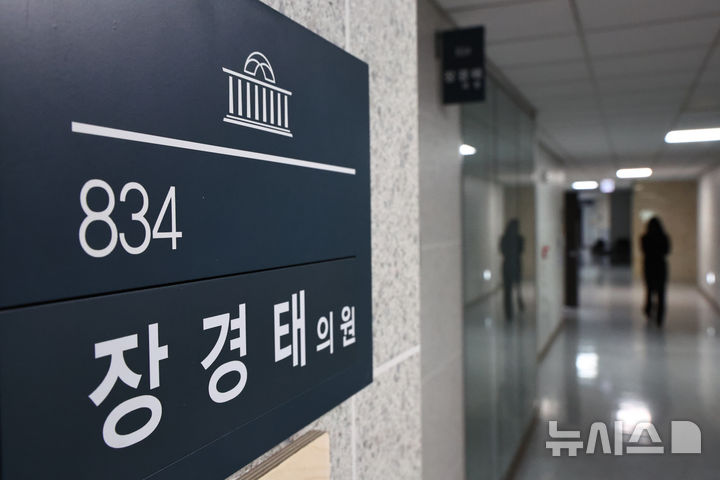 [서울=뉴시스] 김명년 기자 = 성추행 혐의를 받는 더불어민주당 장경태 의원이 20일 탈당을 선언했다. 장 의원은 이날 페이스북을 통해 "당에 누가 되지 않도록 결백을 입증하고 돌아오겠다"고 밝혔다. 사진은 이날 오전 서울 여의도 국회 의원회관 장경태 의원실 모습. 2026.03.20. [email protected]