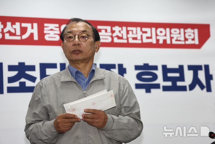 [서울=뉴시스] 김명년 기자 = 이정현 국민의힘 공천관리위원장이 20일 서울 영등포구 여의도 중앙당사에서 경상북도지사 예비경선 결과 개표 전 발언하고 있다. 2026.03.20. [email protected]