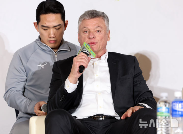 [서울=뉴시스] 이영환 기자 = 대한항공 헤난 달 조토 감독이 20일 오후 서울 강남구 호텔 청담 리베라 베르사이유홀에서 열린 진에어 2025~2026 V리그 포스트시즌 미디어데이에 참석해 각오를 전하고 있다. 2026.03.20. [email protected]