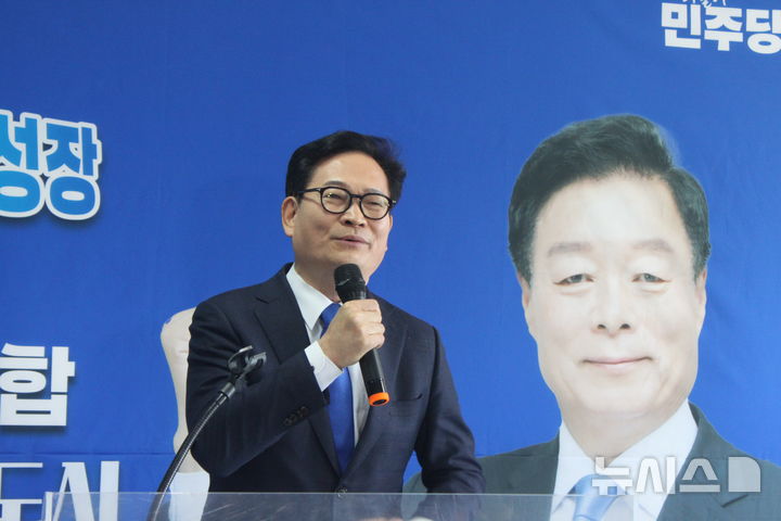 [천안=뉴시스] 최영민 기자=송영길 전 더불어민주당 대표가 22일 충남 천안시 다가동 이규희 더불어민주당 천안시장 예비후보 선거사무소에서 열린 개소식에 참석해 격려사를 하고 있다. 2026.03.22 [email protected]