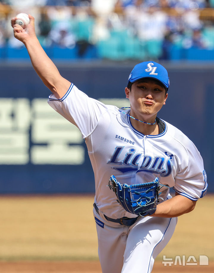 [대구=뉴시스] 이무열 기자 = 22일 대구 수성구 삼성라이온즈파크에서 열린 2026 KBO리그 시범경기 LG 트윈스와 삼성 라이온즈의 경기, 1회초 삼성 선발투수 최원태가 역투하고 있다. 2026.03.22. [email protected]