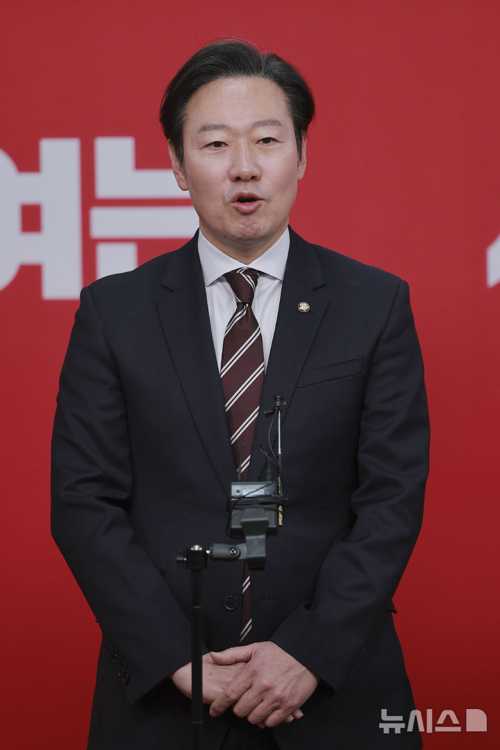 [서울=뉴시스] 김근수 기자 = 박수민 국민의힘 의원이 22일 서울 영등포구 여의도 국민의힘 중앙당사에서 열린 광역단체장 후보 면접을 마치고 백브리핑을 하고 있다. (공동취재) 2026.03.22. [email protected]