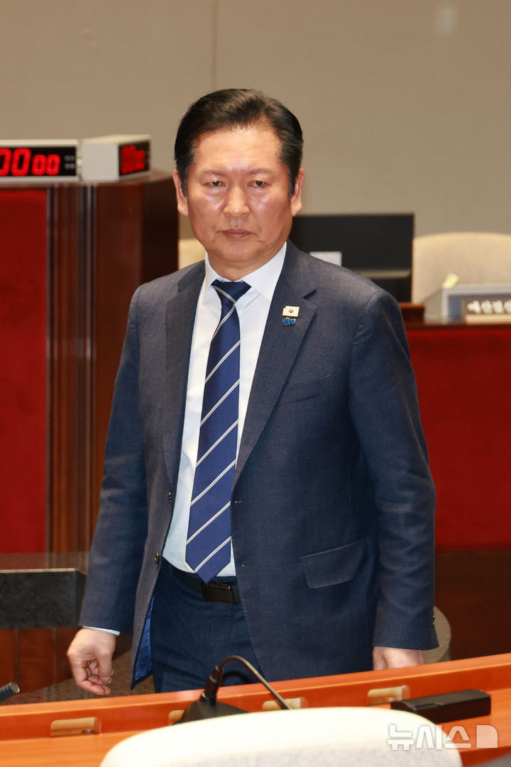 [서울=뉴시스] 고승민 기자 = 정청래 더불어민주당 대표가 22일 서울 여의도 국회에서 열린 의원총회에서 발언 후 자리로 돌아가고 있다. 2026.03.22. [email protected]