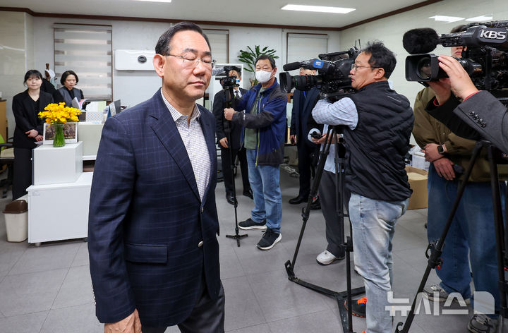 [대구=뉴시스] 이무열 기자 = 주호영 국민의힘 의원이 22일 대구 수성구 국민의힘 대구시당에서 열린 대구 국회의원 연석회의를 마친 뒤 회의실을 나오고 있다. 202603.22. [email protected]