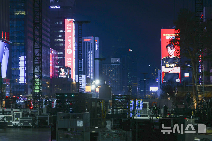 [서울=뉴시스] 김근수 기자 = 22일 저녁 서울 종로구 광화문광장에서 전날 열린 방탄소년단의 'BTS 컴백 라이브 : 아리랑' 공연 무대 철거작업이 진행되고 있다. 2026.03.22. [email protected]