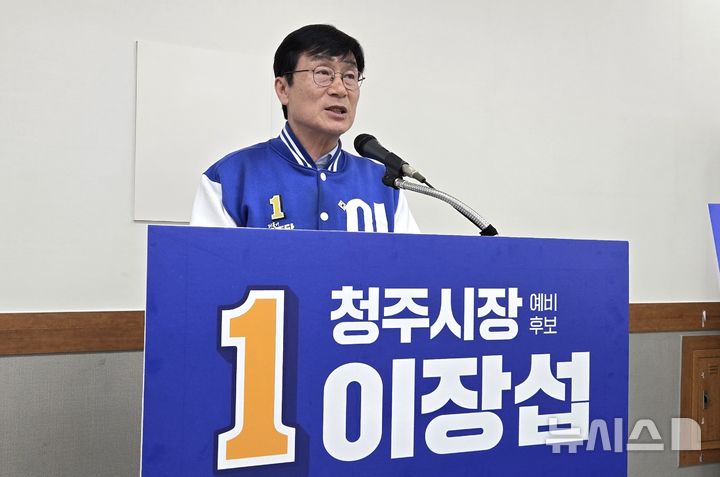 [청주=뉴시스] 임선우 기자 = 이장섭 더불어민주당 청주시장선거 예비후보가 19일 청주시청 브리핑룸에서 중동 피해기업 지원 대책 방안을 발표하고 있다. 2026.03.23. [email protected]