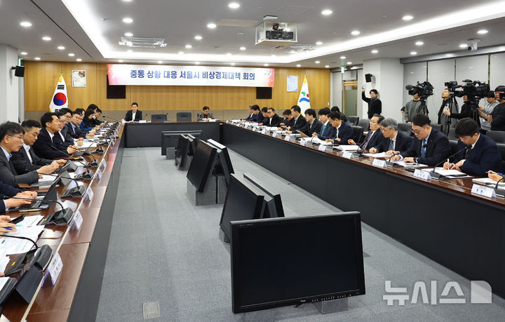 [서울=뉴시스] 최진석 기자 = 오세훈 서울시장이 23일 서울 중구 서울시청에서 열린 중동 상황 대응 서울시 비상경제대책 회의에서 발언하고 있다. 2026.03.23. [email protected]