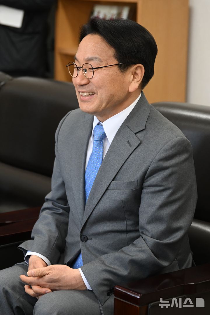 [광주=뉴시스] 이현행 기자 = 강기정 전남광주통합특별시장 예비후보가 23일 오후 광주 서구 쌍촌동 천주교광주대교구청에서 옥현진 대주교를 예방하며 발언하고 있다. 2026.03.23. [email protected]