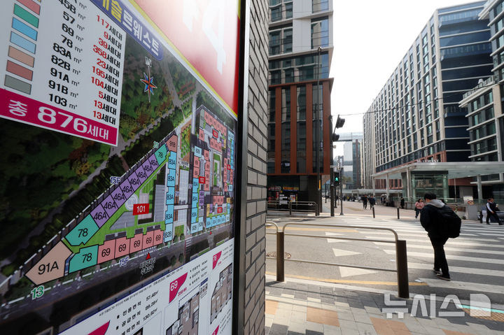 [서울=뉴시스] 조성우 기자 = 24일 오후 서울 강서구 마곡지구의 한 공인중개사무소에 오피스텔 분양 안내문이 게시되어 있다.
