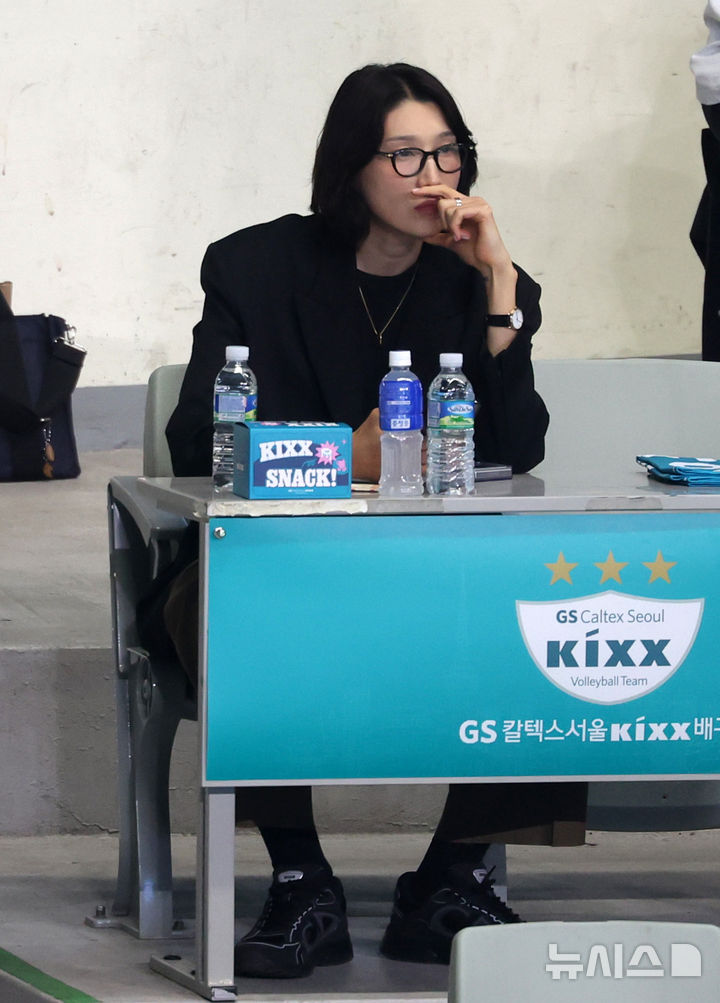[서울=뉴시스] 이영환 기자 = 김연경이 24일 오후 서울 중구 장충체육관에서 열린 2025-2026 V-리그 여자부 준플레이오프(준PO) GS칼텍스와 흥국생명의 경기를 관람하고 있다. 2026.03.24. [email protected]