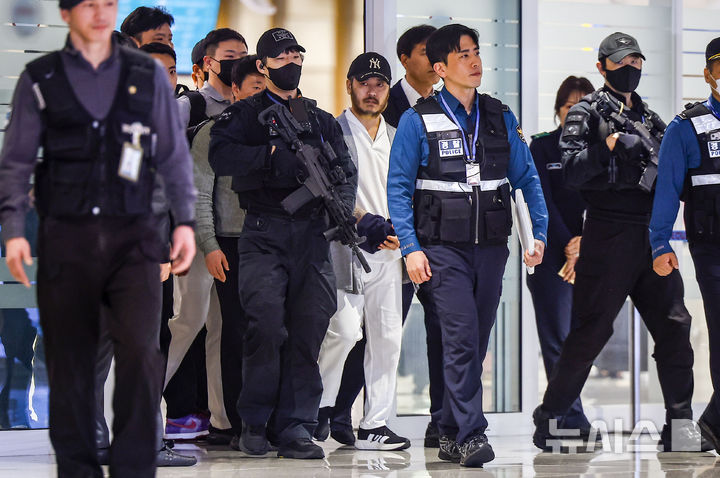 [인천공항=뉴시스] 정병혁 기자 = 필리핀에서 이른바 '전세계'라는 활동명으로 마약을 유통했던 박왕열 씨가 25일 인천국제공항 제2터미널을 통해 송환되고 있다. 2026.03.25. [email protected]