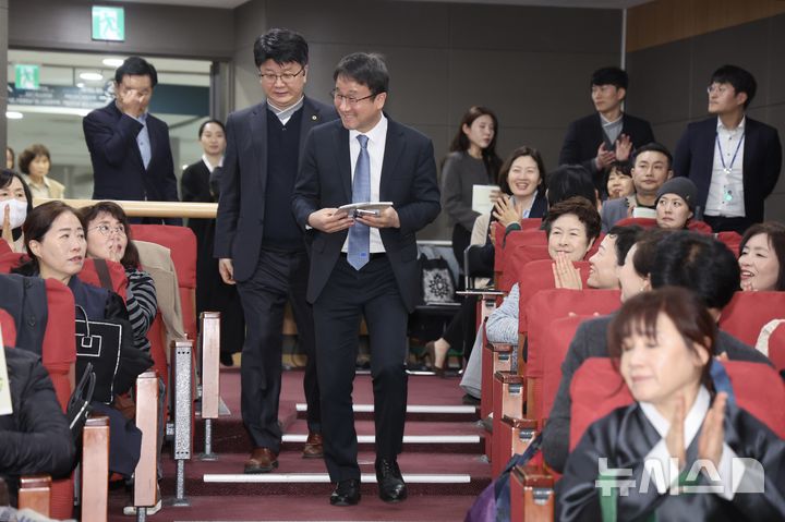 [서울=뉴시스] 김명년 기자 = 한병도 더불어민주당 원내대표가 25일 오후 서울 여의도 국회 의원회관에서 열린 '한국 차 문화 발전을 위한 정책 포럼'에서 입장하고 있다. 2026.03.25. [email protected]