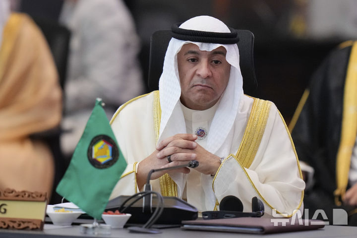 [쿠알라룸푸르(말레이시아)=AP/뉴시스]자셈 모하메드 알-부다이위 걸프협력회의(GCC) 사무총장이 2025년 5월27일 말레이시아 쿠알라룸푸르에서 열린 동남아시아국가연합(ASEAN) 정상회의 이후 제2차 아세안-걸프 협력회의(GCC) 정상회의에 참석하고 있다. 그는 26일 이란이 호르무즈 해협을 안전하게 운항하는 대가로 선박들에 통행료를 부과하고 있다고 비난했다. 2026.03.26.